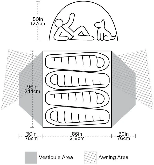 For added 3-season versatility, new awning-style vestibules with double-zippers provide multiple access options and extended living space. This is a fantastic feature for creating sun-shade or prepping food in wet weather. Awnings can be erected using trekking poles or accessory tent poles (sold separately) and stabilised with the included guylines.