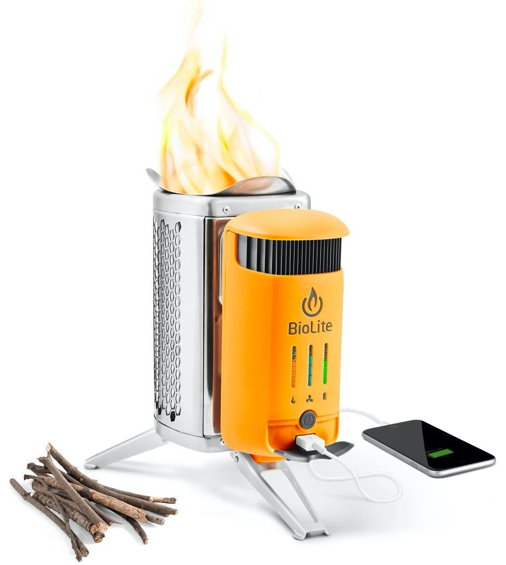 Founded on the principle of sustainability, BioLite fuses the needs of families living in energy poverty with those of outdoor enthusiasts to bring you a portable wood-burning stove, grill and kettle set that converts heat into usable electricity for everyday use by anyone, anywhere.