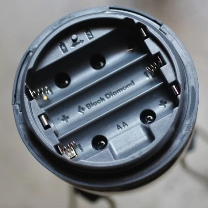 - Power meter displays for both alkalines and internal rechargeable battery