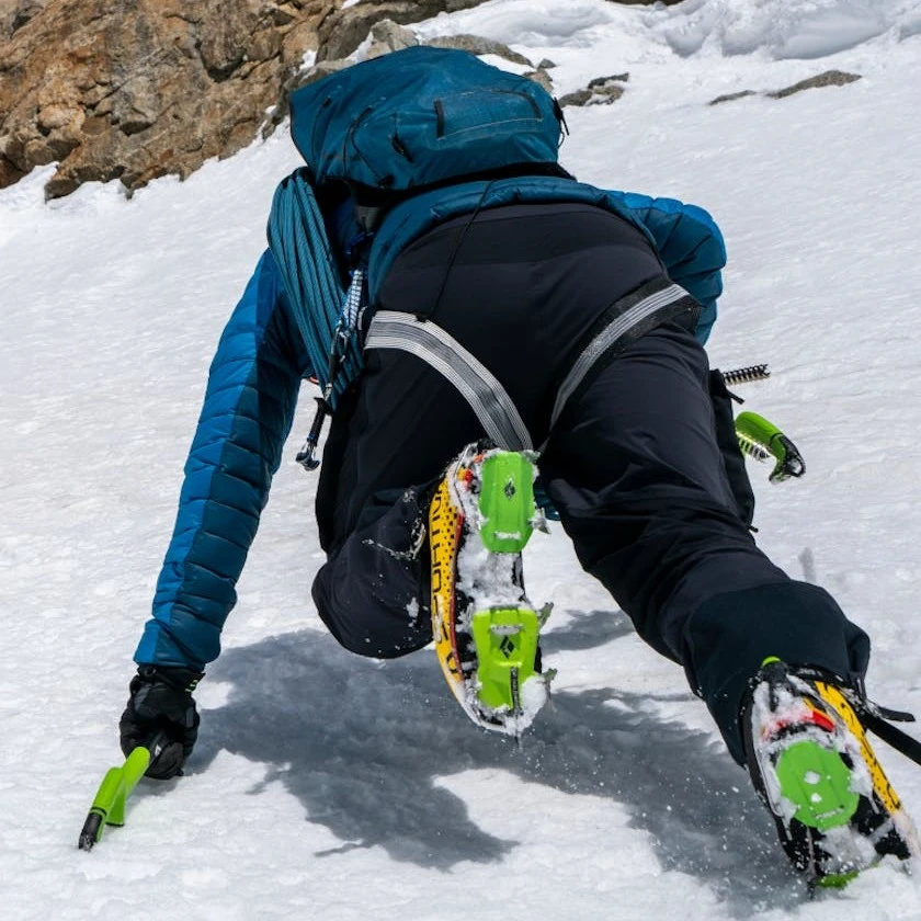 - Ice screw slot in each leg loop to reduce clanking