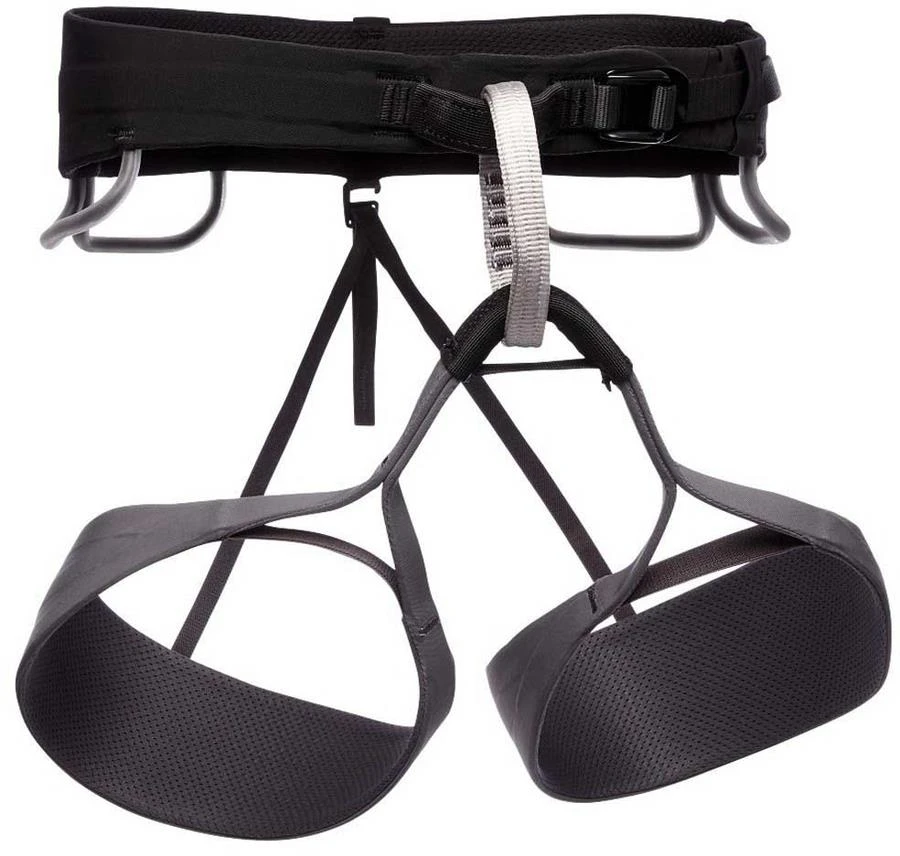 Black Diamond’s Solution harness includes speed buckle adjustment, and features four pressure-moulded gear loops and adjustable, releasable elastic risers.