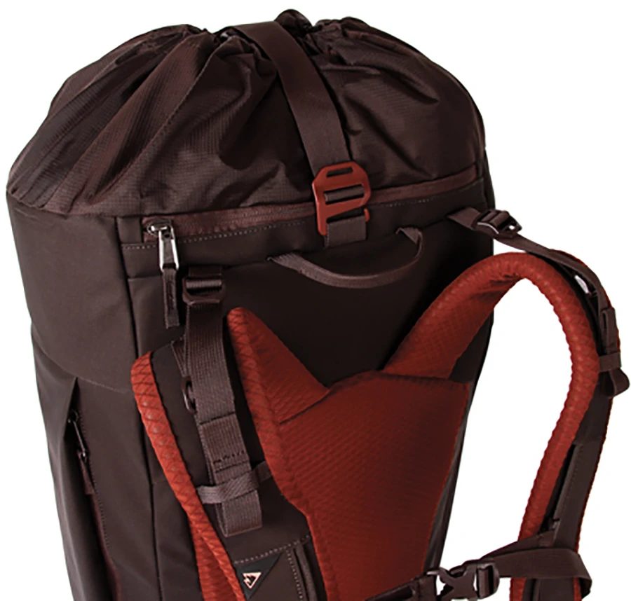 400D high tenacity nylon in the main body reduces weight while a TPU coating and reinforced flooring add further durability. The flooring is also flat, enabling the pack to handily stand on its own. The rucksack’s main compartment is accessed by a full-height central front zipper.