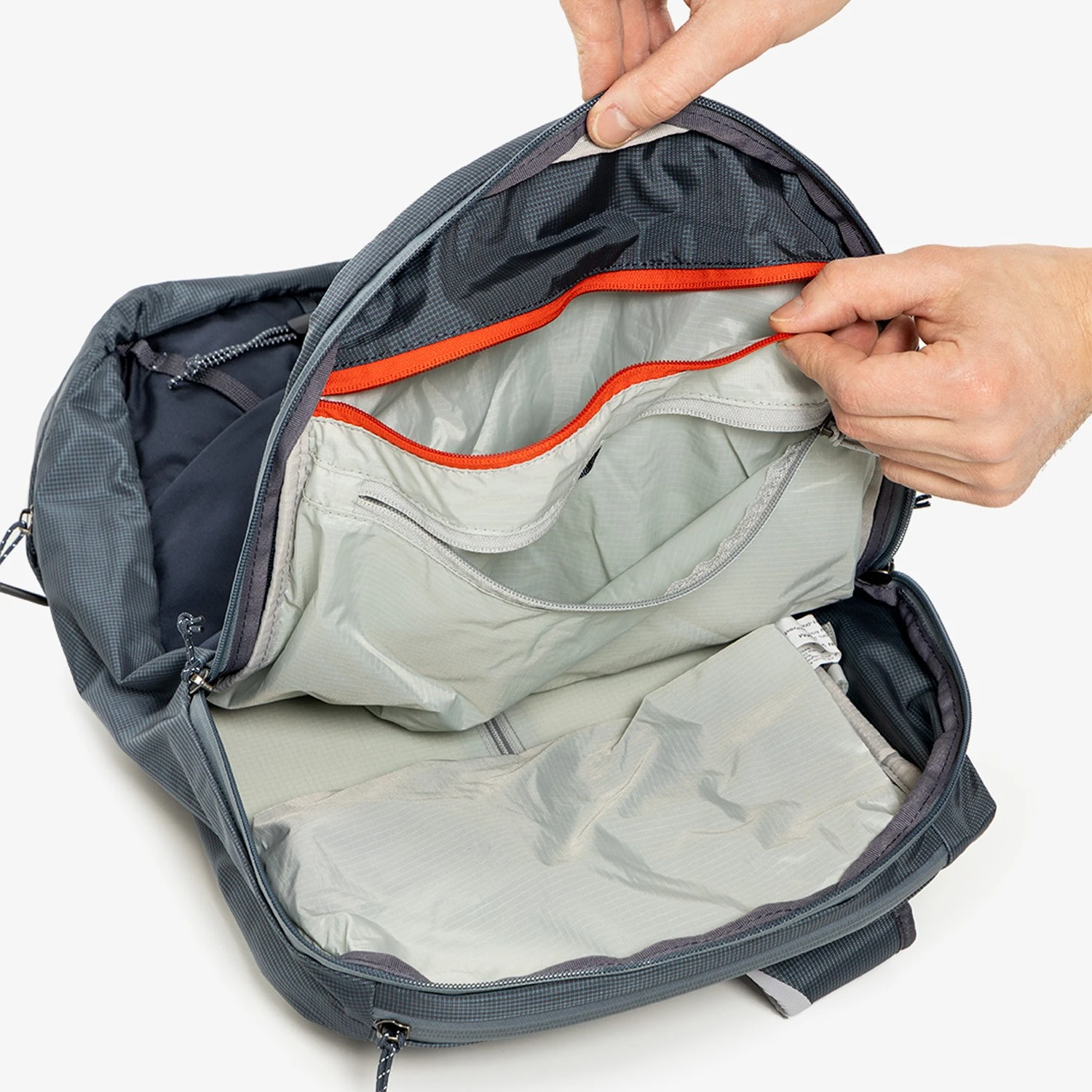 The main access to the internal compartment can be facilitated by both main zipper access and rear zipper access for mountain-capable organisation. A dedicated avalanche safety pocket is featured as standard for any mountain pack, while an easy-access crampon compartment provides safe stowage of technical winter equipment.