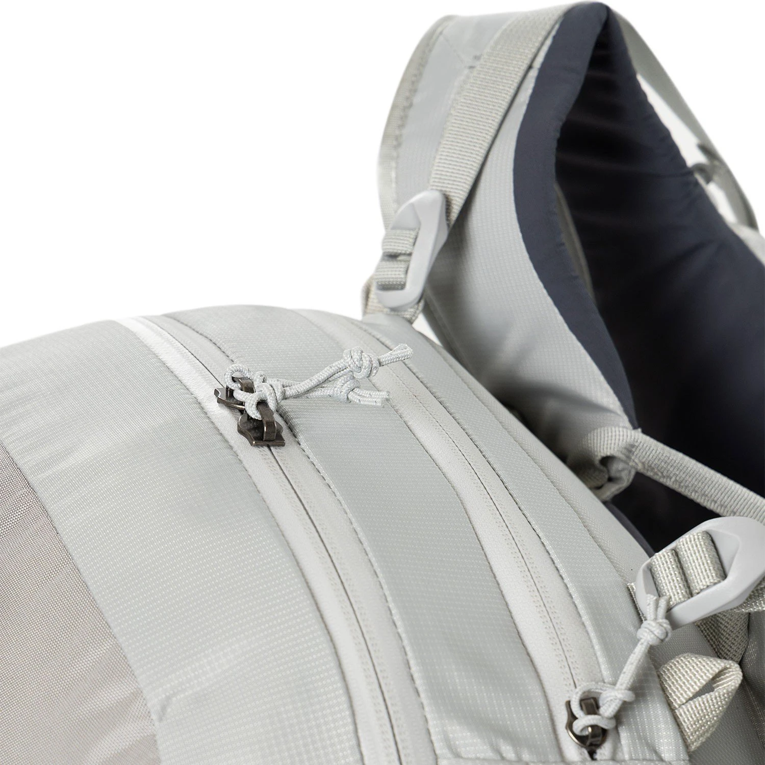 Constructed from a reinforced front panel of 420d Robic nylon improves the durability of the pack when laying it down on both hardpack snow and ice, while 210HD is the perfect combination of strength to weight. A stretch woven back panel provides comfort and provides snow shedding capabilities. Coated upper zips reduce the risk of water and snow ingress allowing you to travel further safe in the knowledge your gear will remain dry.