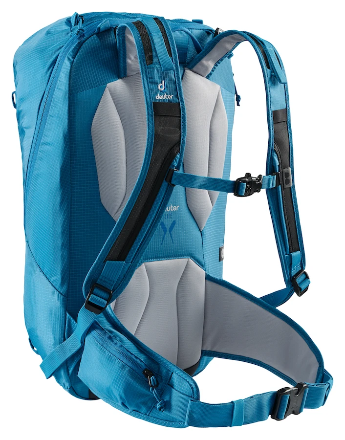 Deuter’s Alpine Lite Back System means you can find the most comfortable carry position over challenging terrain. The pack’s shaped shoulder straps are complemented by load adjustment straps and the flexible Delrin® U-frame to give you stability and effective load transfer by keeping the pack close to the body’s centre of gravity. Channels between pads provide airflow to help keep you feeling fresh and the material on the back is snow resistant to keep the mountain elements at bay.