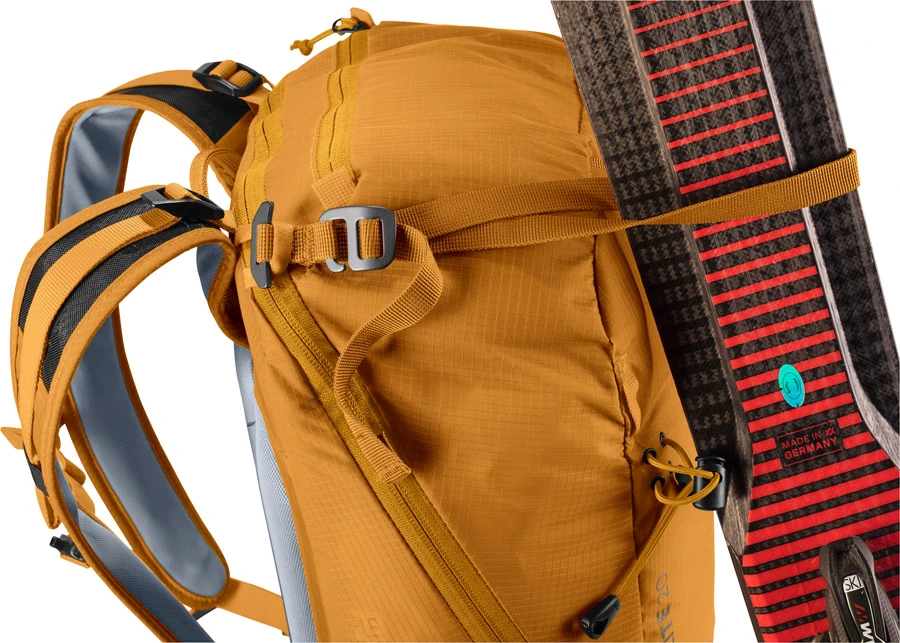 Deuter’s Alpine Lite Back System means you can find the most comfortable carry position over challenging terrain. The pack’s shaped shoulder straps are complemented by load adjustment straps and the flexible Delrin® U-frame to give you stability and effective load transfer by keeping the pack close to the body’s centre of gravity. Channels between pads provide airflow to help keep you feeling fresh and the material on the back is snow resistant to keep the mountain elements at bay.