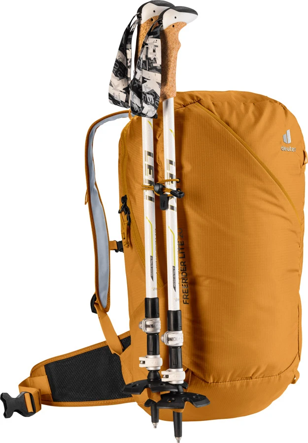 The Deuter Freerider Lite 20 boasts a durable construction and a trimmed down array of features from carrying systems for skis and backcountry essentials to fully adjustable fit systems.