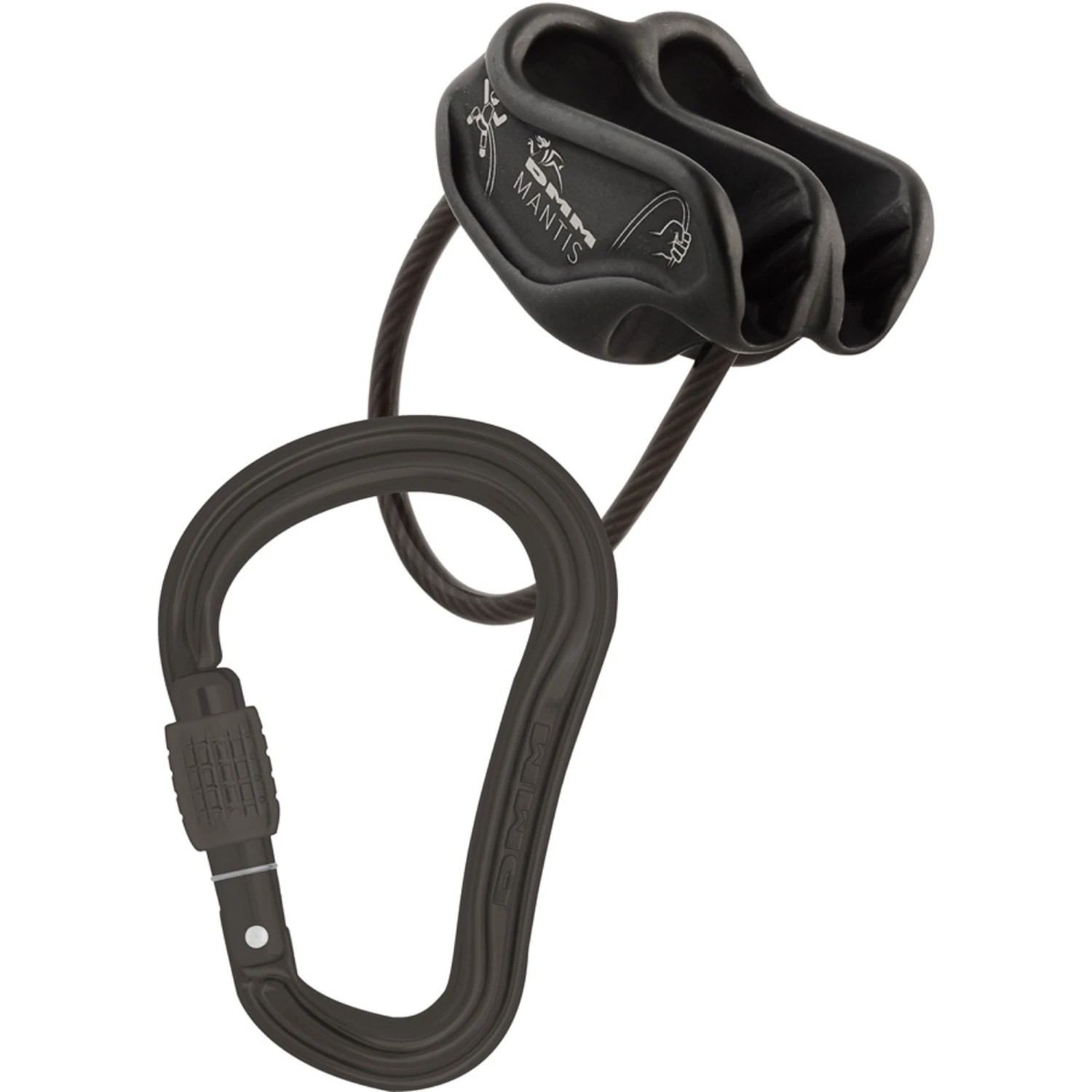 The Mantis belay device is paired with a DMM Shadow screw gate carabiner. The Shadow minimizes the risk of cross-loading. Easy to operate with one hand, and able to locate on the belay loop in a single movement, the Shadow is intuitive to use and simple to rack. Correct orientation is achieved with an internal wire gate that keeps the Shadow captive on a belay loop, and a horn that prevents assisted braking devices from moving onto the carabiner’s spine. A full-section top bar gives smooth rope control and resists wear.