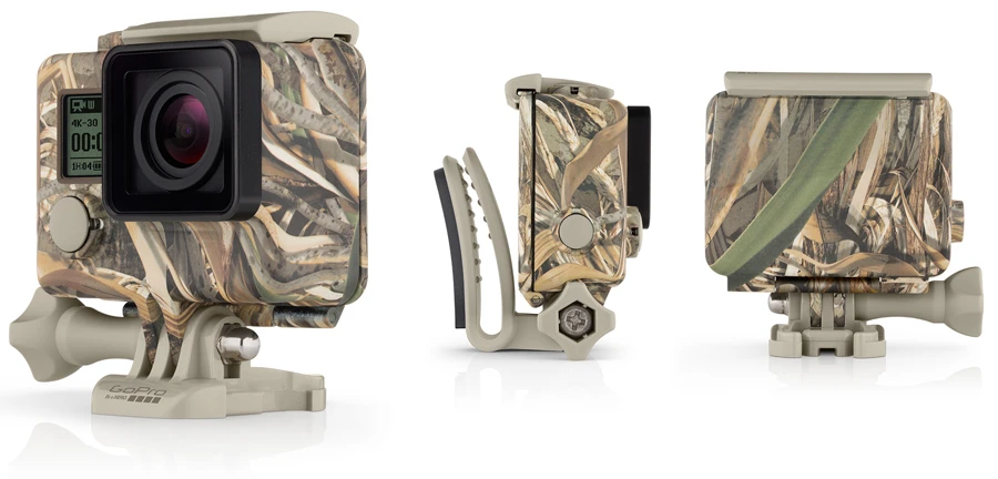 The GoPro Camo Housing is a brand new housing option from GoPro which camouflages your camera in waterfowl habitats. If you’re trying to film in an environment where you want to avoid drawing attention to the camera then this is the perfect replacement housing.