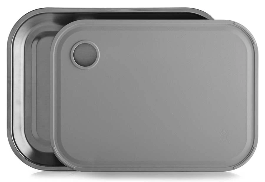 The Cut and Serve Platter forms part of Hydro Flask’s Outdoor Kitchen range of high-quality camping tableware. The Cut and Serve Platter comprises a durable cutting board and a sleek stainless steel serving platter, doing double duty in your camp kitchen for outdoor kitchen food prep.