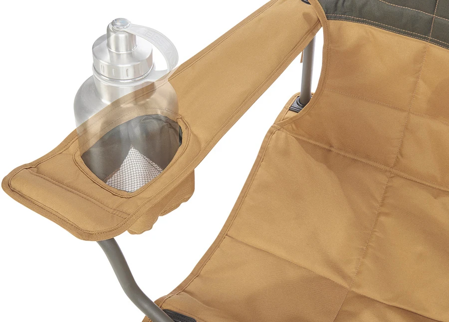 Featuring 3 recline positions, adjustable armrests and beverage holders, the Deluxe Lounge Chair is built for the good life. The padded seat and back deliver cosy warmth and comfort while the folding steel frame is durable and assembles in seconds. Insulated drink holders on each armrest ensure your beverage of choice will never be out of reach. Includes padded roll-tote storage bag for a travel-friendly design.