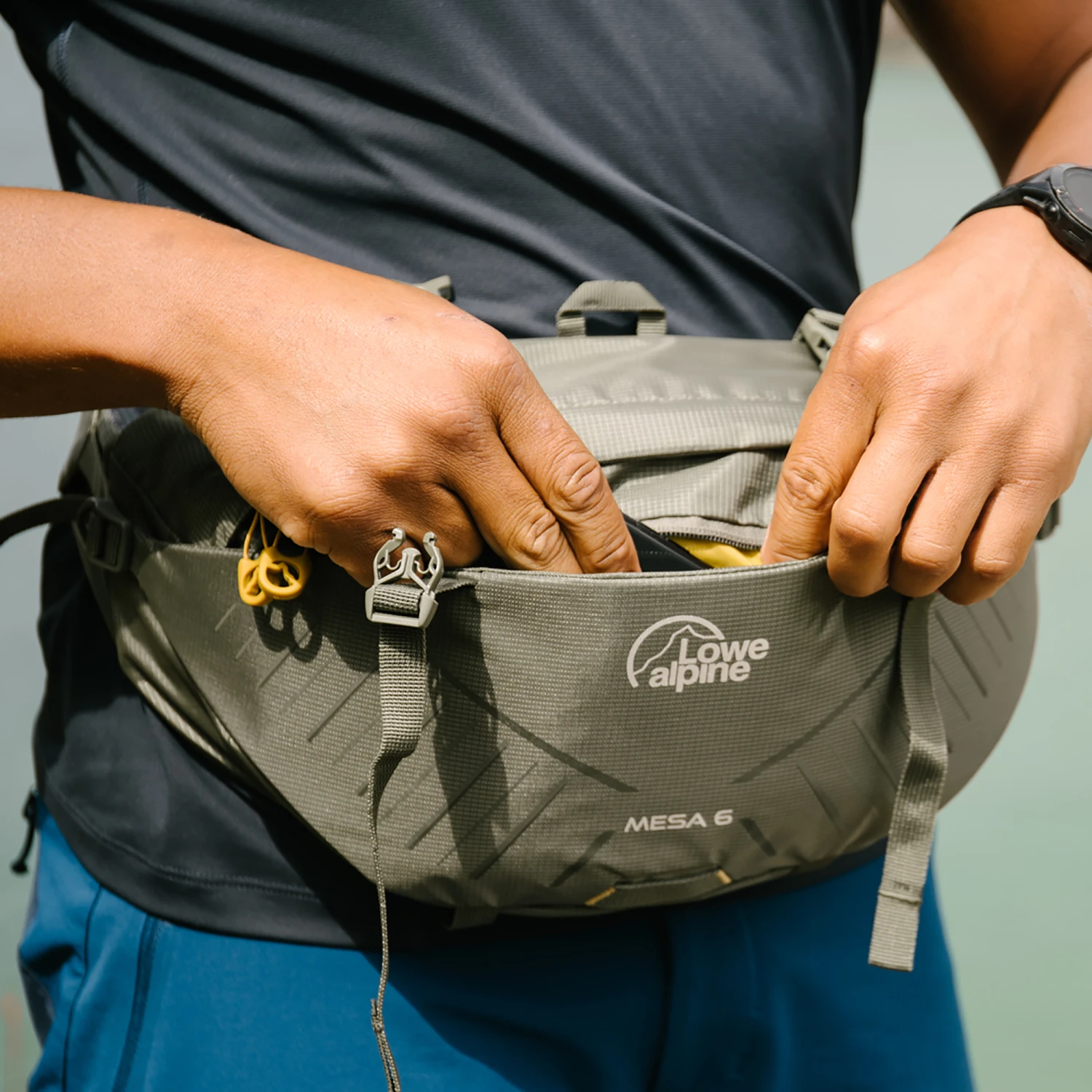 Lowe Alpine’s Mesa 6 is a nifty little hip pack that’s ultra versatile. Small but with all the features you require in a belt pack, it allows you to take those little extra bits on the trail from snacks to an extra layer.