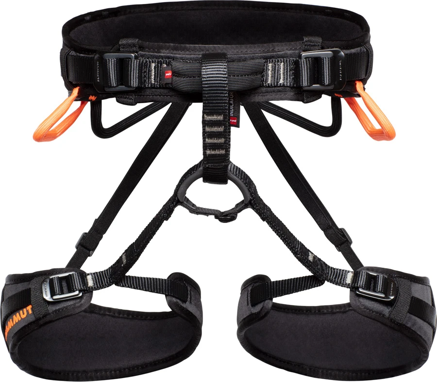 The Ophir 4 Slide is a great, fully adjustable climbing harness with an innovative two-part webbing design creating a very attractive climbing harness from Mammut.