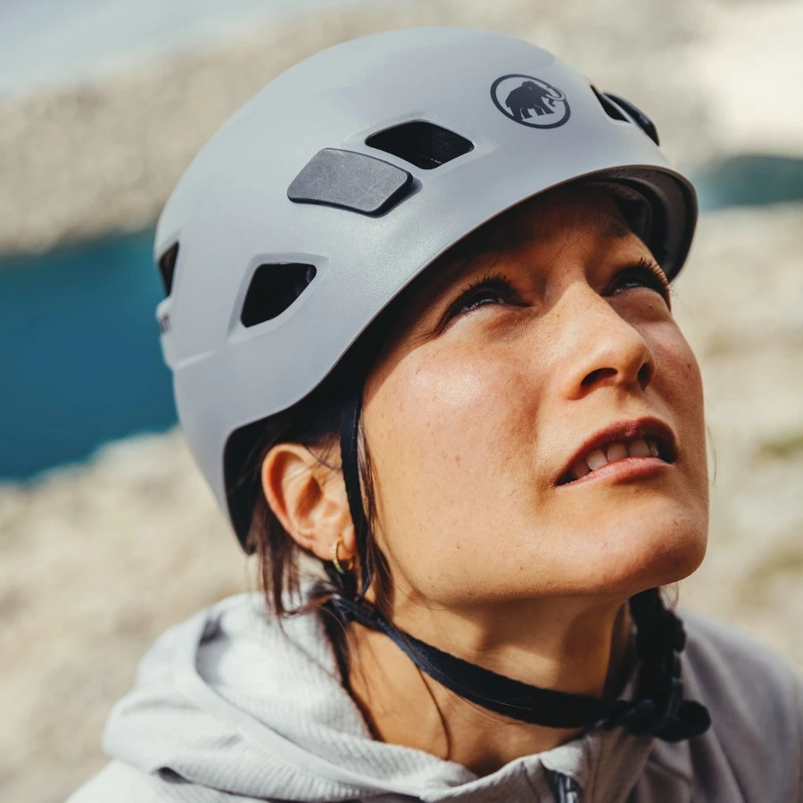 The foam padding covering the entire interior offers optimum protection from side, front or rear impacts – all the way to the helmet rim and sits comfortably on your head with a compact design. Ventilation openings prevent overheating, and the thumbwheel system lets you adjust the helmet to fit all head sizes and the clip brackets are also provided for securely attaching a headlamp.