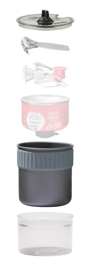 This single-person set features a 0.75L aluminium pot made for boiling water and heating single-pouch meals. The insulated design means it doubles as a mug for hot drinks. Built for compact convenience, it comfortably stores a PocketRocket® 2 stove and 113g MSR fuel canister (both available separately).