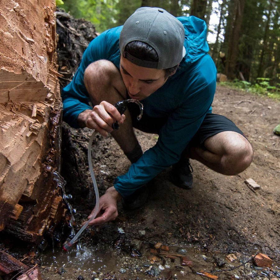 The pocket-sized design is compact with a replaceable hollow fibre filter. It features an easy-to-use squeeze-pump design that filters up to 1 litre per minute with 2000 litres per filter. The attached tube is quick to deploy and lets you drink directly from the source without lying down to fill or scoop.