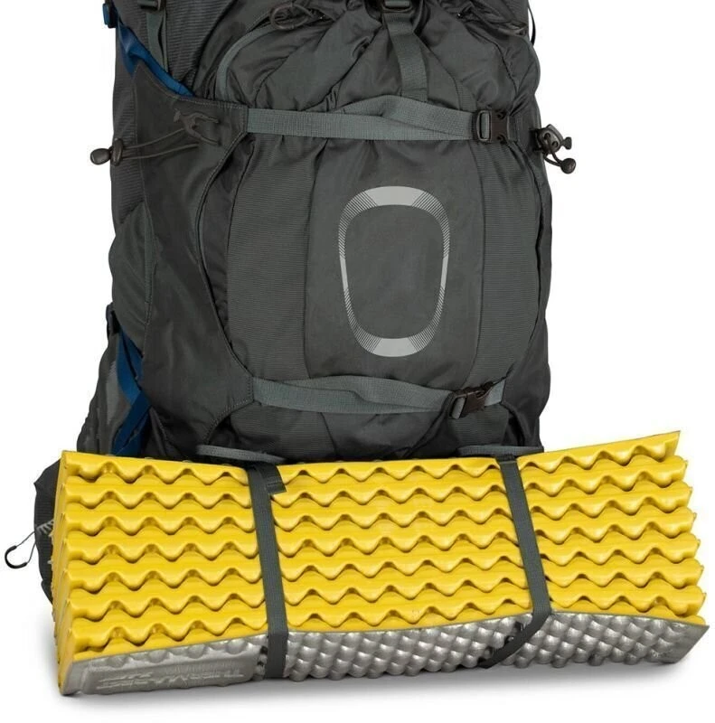 Carry sleeping mats and tent poles in an array of configurations with an array of webbing loops and compression straps. A water bottle pocket features anatomically reachable storage holes to keep you hydrated on the go. Moreover, the pack is hydration system compatible for those who prefer to use a reservoir.