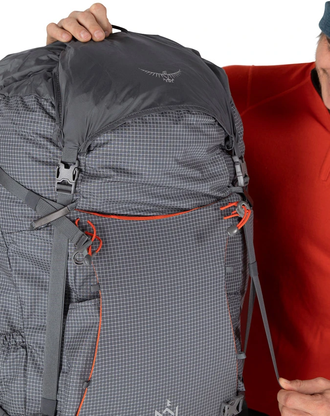 A removable top lid provides main entry into the Mutant 52, the lid allows for the additional carry of rope or when overhauling the back for base camp approaches. The entire lid is optionally removable, to reduce overall pack weight or provide improved head clearance on more demanding climbs. When stripped the FlapJacket provides another level of water/snow protection keeping your gear protected.