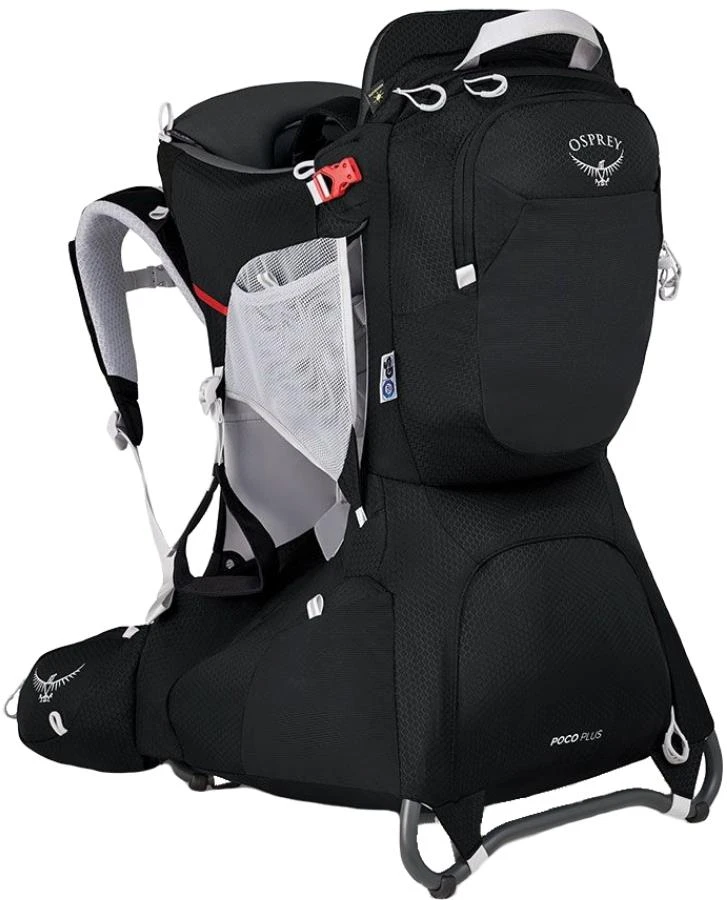 The Poco Plus’ back system features adjustable AirSpeed trampoline suspended mesh and fit-on-the-fly adjustments, so it’s easy to accommodate different size adults. The hip belt and torso length are also adjustable to enable a bespoke fit. In addition, the child safety harness, seat, and foot stirrups are adjustable to accommodate a range of children’s shapes, sizes, and weights.