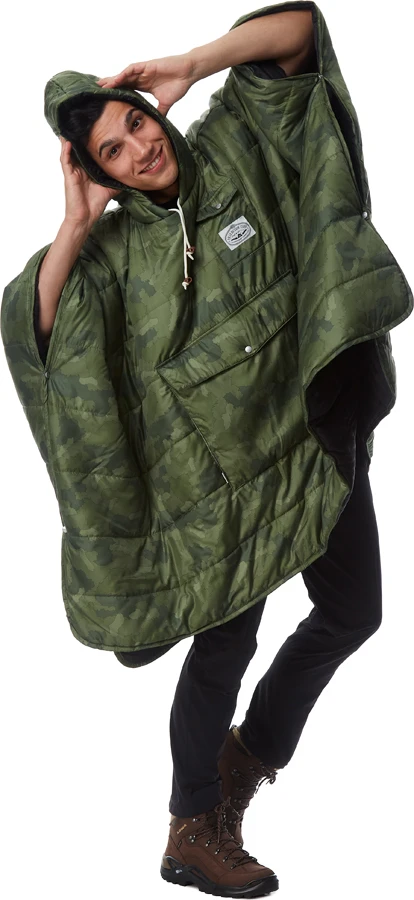 The Reversible Camp Poncho from Poler gives you a fun and versatile piece of outdoor kit that is perfect for keeping you warm, dry, and comfortable for an evening around the campfire or a break on the trail. The Camp Poncho can be used either as a blanket or converted into a hooded poncho.