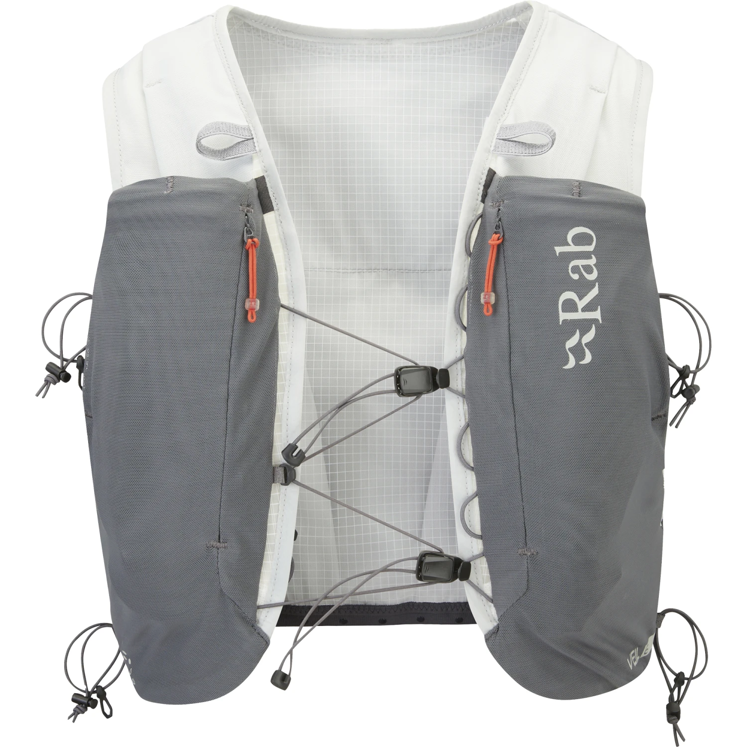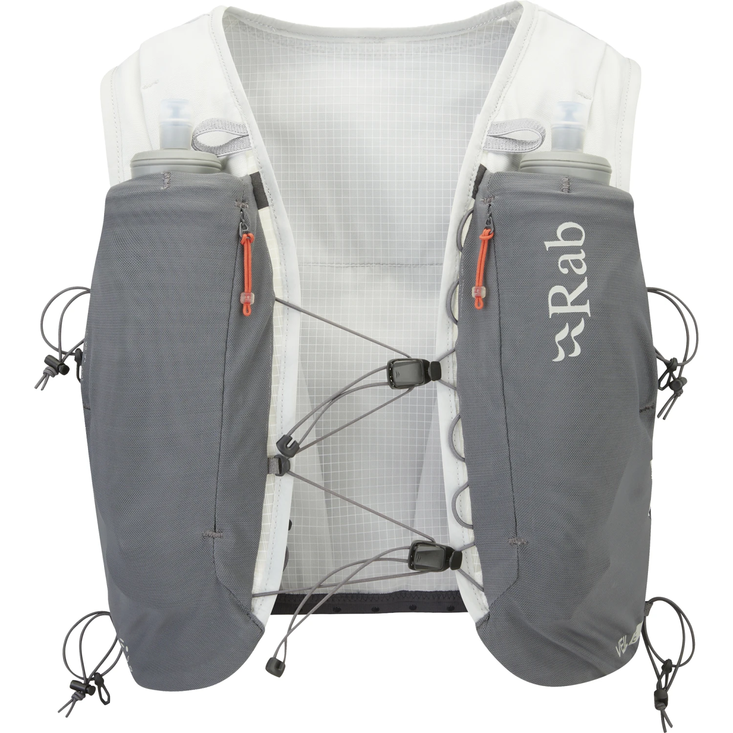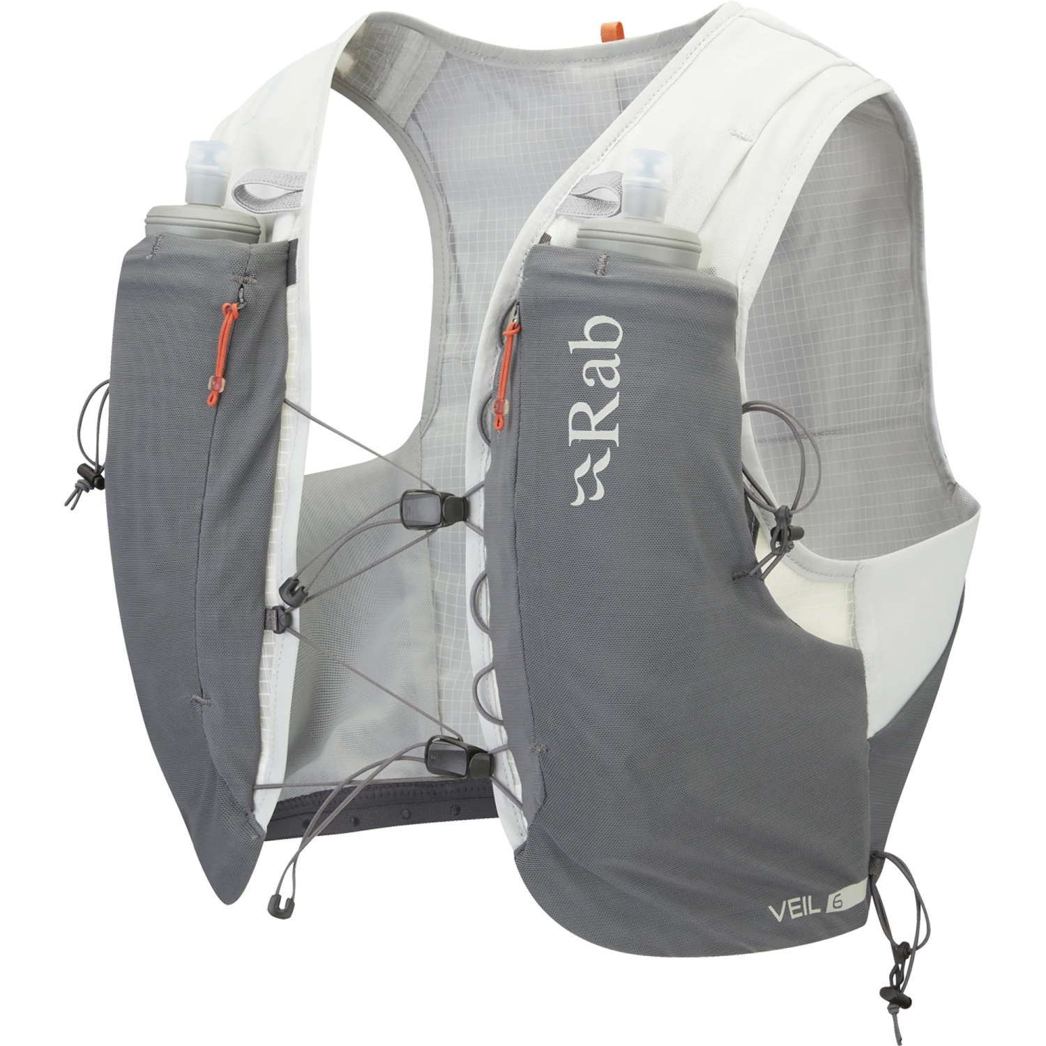 Made rain shower proof with a 100% fluorocarbon-free DWR finish, when every gram counts, choose the Veil 6 running hydration vest from Rab.