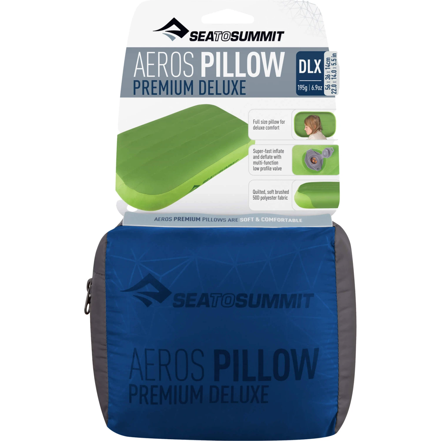 This super-soft, compact and lightweight inflatable pillow will help you find comfortable slumber wherever you end up. The Aerosâ„¢ Premium Deluxe Pillow is a result of the Sea to Summit Design Team taking the adage of ‘bigger is better’ to heart. The result of this super-sizing project is a full-sized pillow that’s still light and compact enough to accompany you into the backcountry.