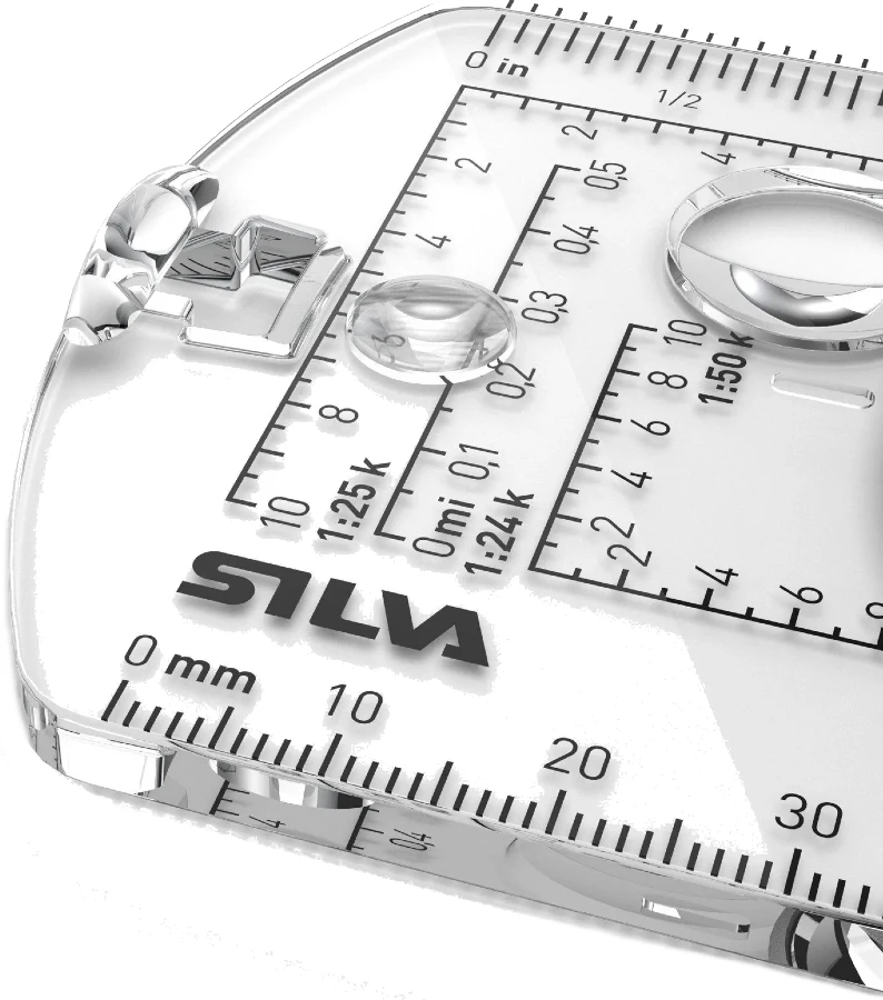 As a professional compass, the Expedition has all of the standard features including; a scratch resistant base plate, silicon rubber feet for grip on map-cases, night-enabling luminous markings, magnifying lens, map-measuring scales in mm or inches, 1:25,000, 1:40,000, 1:50,000 and GPS scales. A small hole runs through the compass body for marking positions on a map with improved precision.