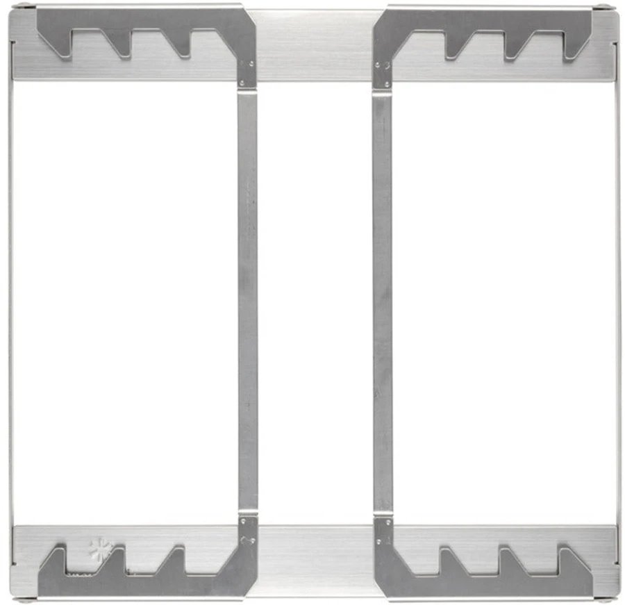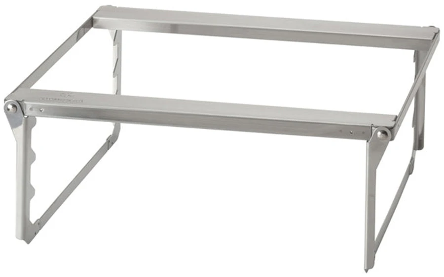 The Grill Bridge features a chrome-coated steel grid construction that fits over your Snow Peak Fireplace allowing you to grill directly over an open fire or set a pot of water or pan on for cooking and heating. Folding legs lets you pack the Grill Bridge away for a travel-friendly design.