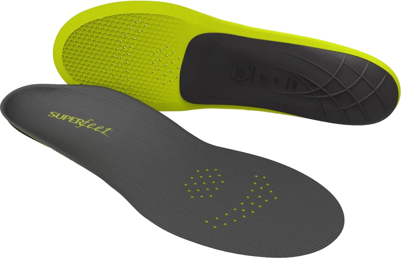 The result of years of research and field testing, Superfeet have produced the Carbon insole aimed at the dedicated athlete who demands high performance results. By combining a carbon fiber-reinforced stabilizer cap with a durable, ultralight foam layer, Superfeet have created the ultimate lightweight performance insole. A biomechanical shape and low-volume design improve the fit and feel of the Carbon insole in any tight-fitting athletic footwear and everyday shoes.