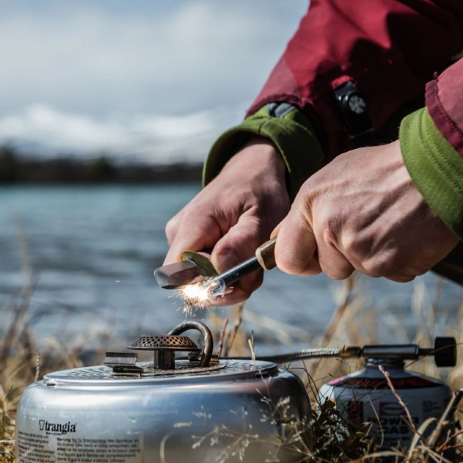 Completing the set is the Trangia 25 Series Gas Burner. This compact camp stove delivers more heat than the conventional spirit burner and without leaving any deposits on the pans. It fits easily into the lower windshield section and features a durable connector hose and flame regulator for simmer/boil control.