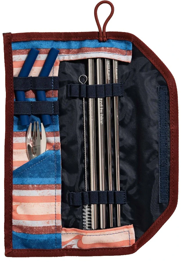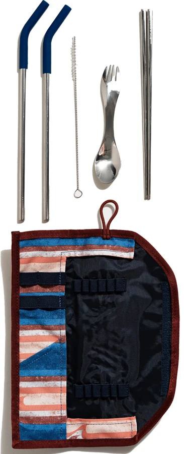 The Utensil Kit features a pair of sturdy, stainless steel drinking straws; silicone straw tip; cleaning brush; stainless steel spork, and stainless steel chopsticks.