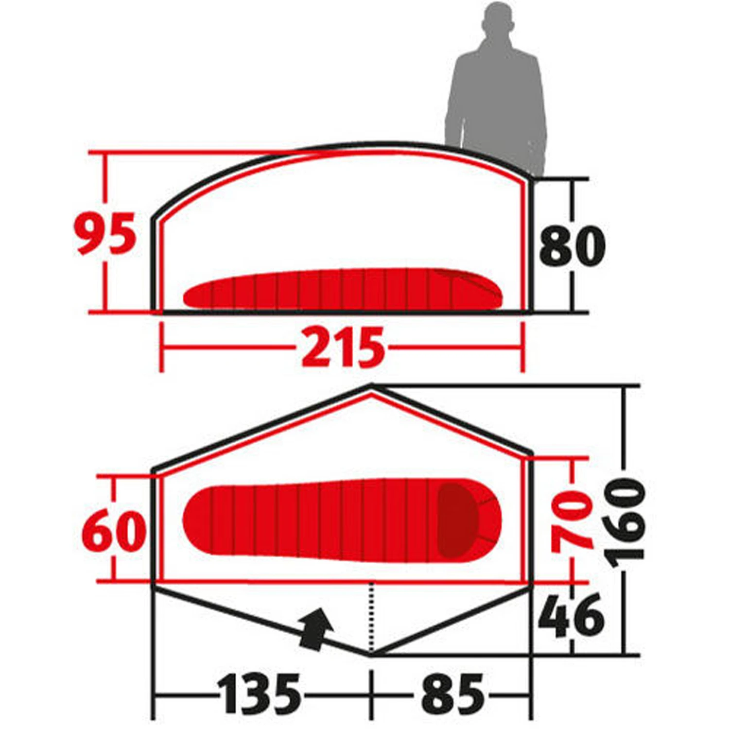 On the inside, there’s room for 1 person with a wide door providing hassle-free access and protection from changeable winds. The inner tent is also equipped with a mosquito mesh in the doors as well as at the foot and head which allow bug-free ventilation and moisture management in warmer weather. A vestibule that is formed by the extra pole gives you added storage space for packs and footwear. Finished with internal pockets to help organise smaller essentials.