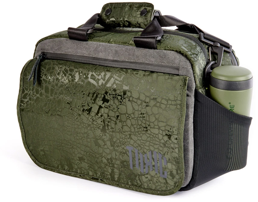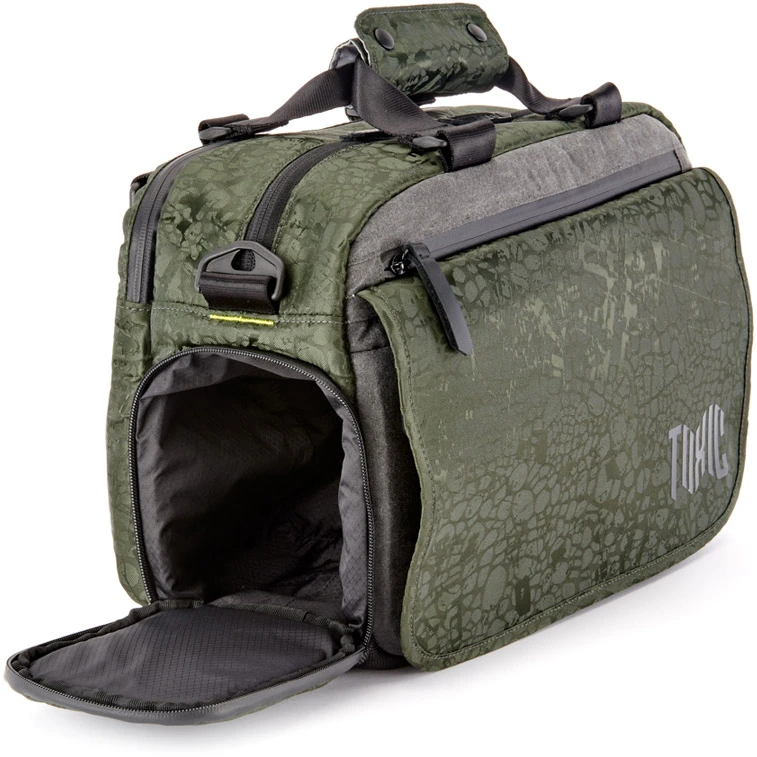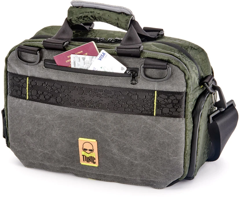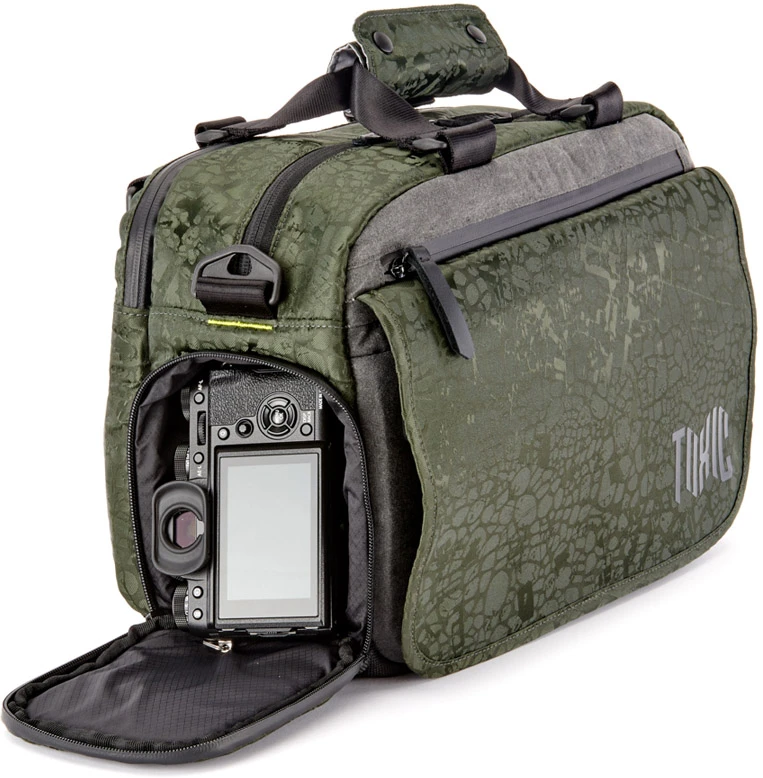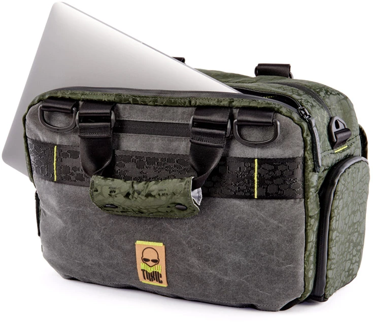 The shoulder strap is made of woven nylon webbing, smooth and tactile, with easily adjustable length, and finished with a detachable shoulder pad, with air mesh and silicone grips. It has a choice of side or rear attachment points to enable use as a messenger or sling-style bag.
